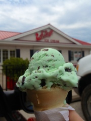 I'd hoped for us to have time to go to the country club's pool, but clouds rolled in and Ben was in a hurry to get back to Chicago for what turned out to be a very wet Phish concert (three hours of rain with no shelter, yuck), instead to compromised to hit up Whitey's Ice Cream on our way out of town. Since it was National Ice Cream Day (3rd Sunday in July), we let Oscar and Huey share a scoop. They were in dog Heaven!
